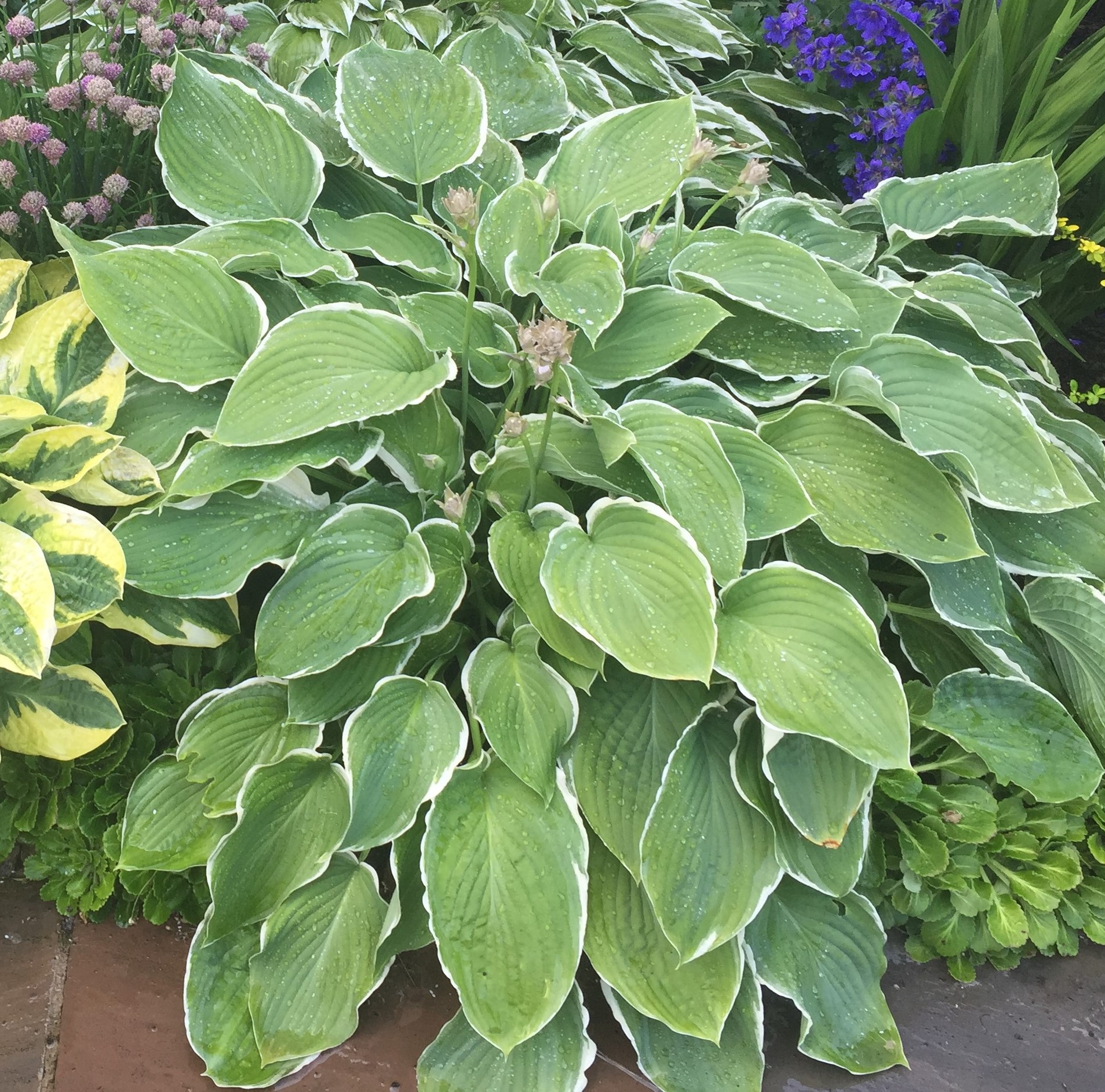 - water at the base of the plants in borders as well as in pots so you are watering the soil where it is really needed and not just wetting the leaves. For some plants like the Hostas above, the leaves act like an umbrella for any rainfall so be sure to give the base of the plant a good soak when you can so you are not wasting water.