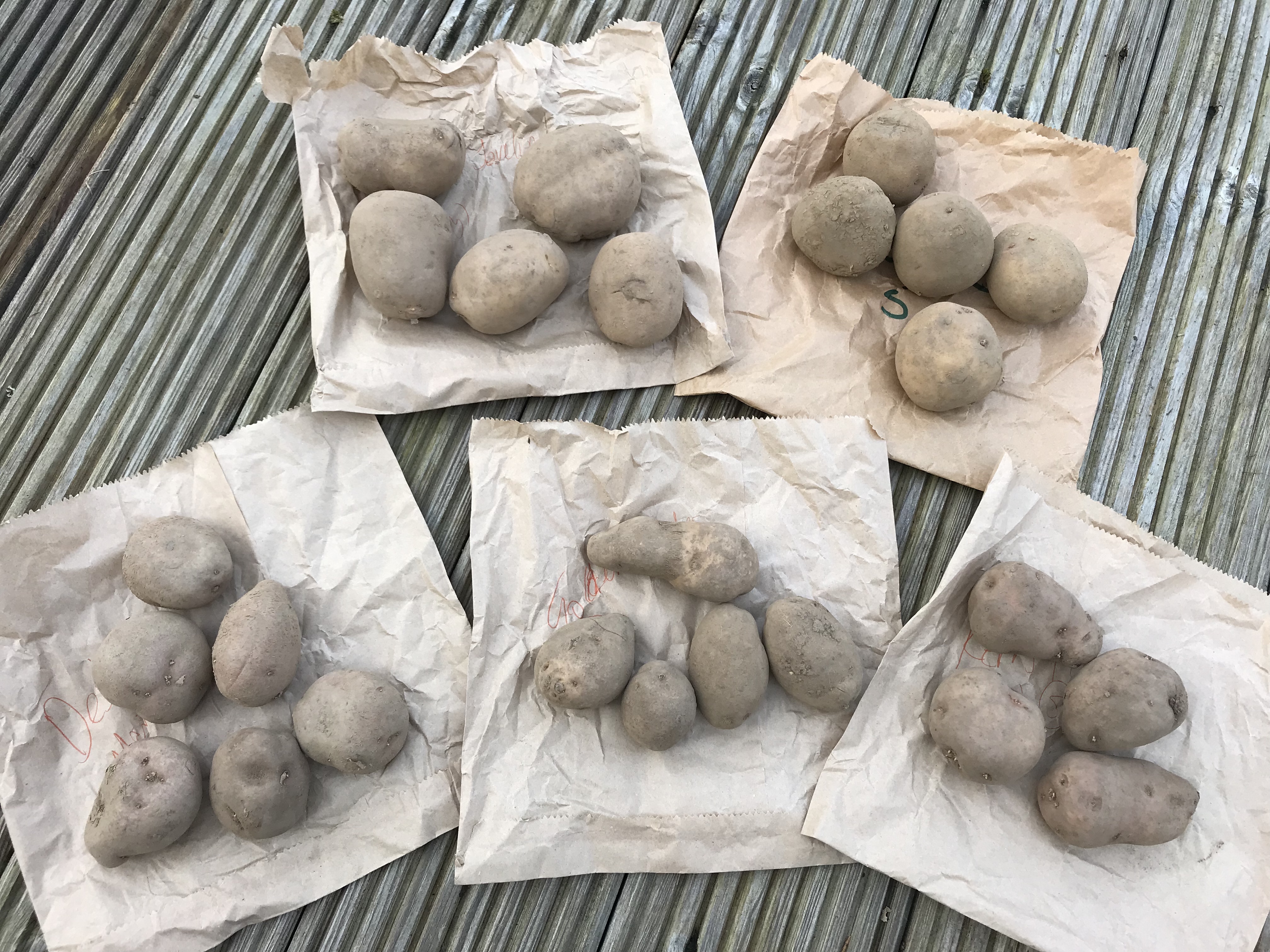 I picked five different varieties: Pentland Javelin for a First Early, Bonnie for a Second Early variety and Golden Wonder, Desiree and Kerrs Pinks for a Main Crop selection.