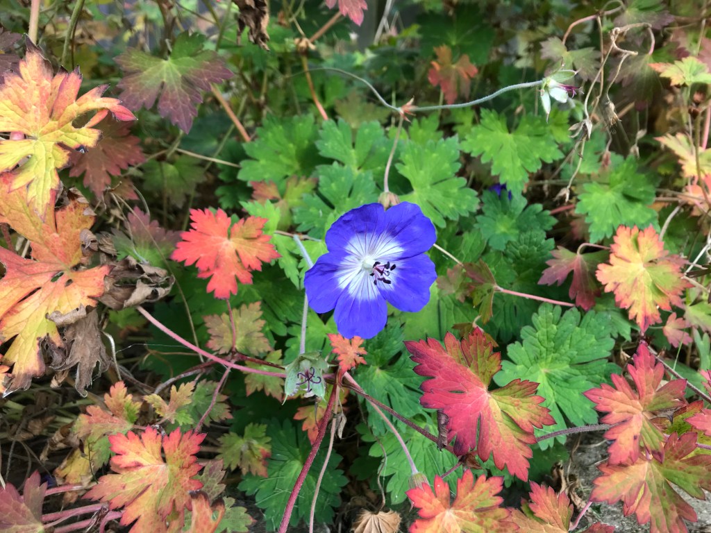 One such example is this stunning purple delight from Geranium Rozanne, still shining bright as if the turning leaf colours and dieback of the rest of plant were not connected to it at all!