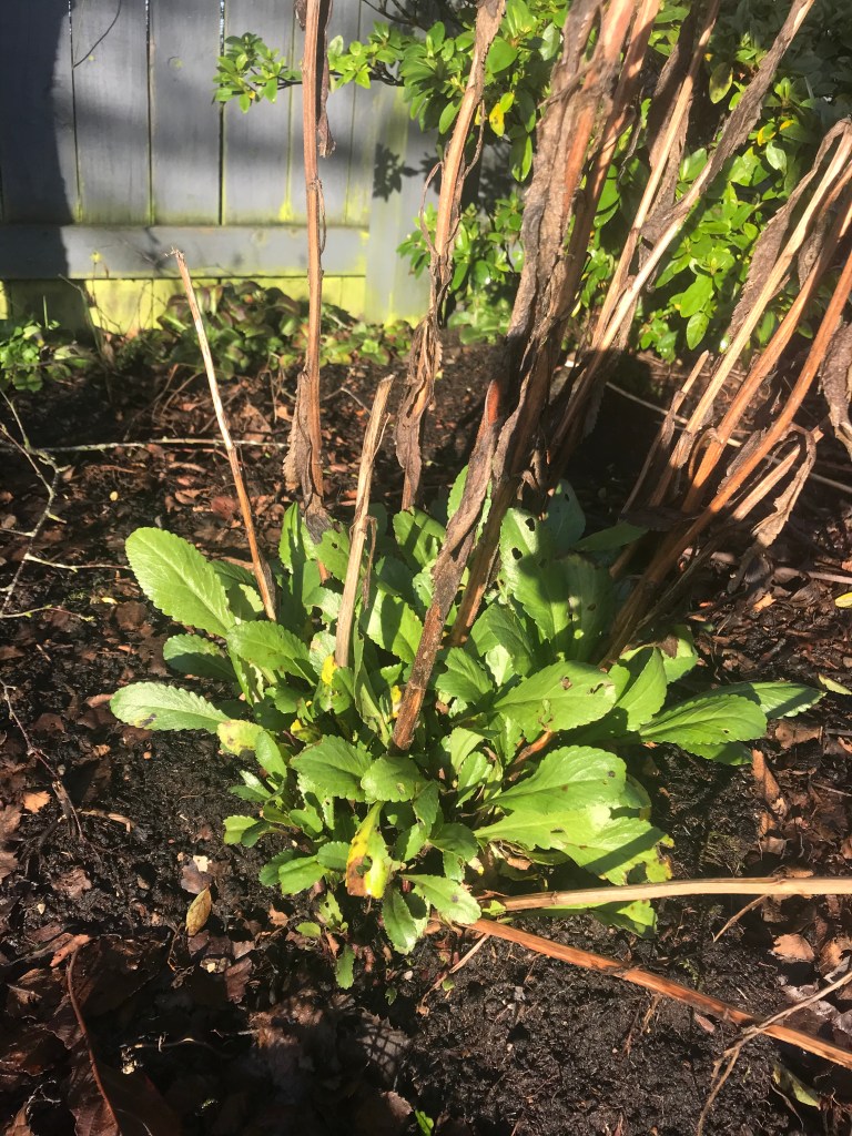 Healthy foliage on the base of the Shasta Daisies promises hope of more stunning, pollinator-friendly flowers this summer. I really want to move all the clumps around the borders but they are so hard to dig out – luckily I love digging!