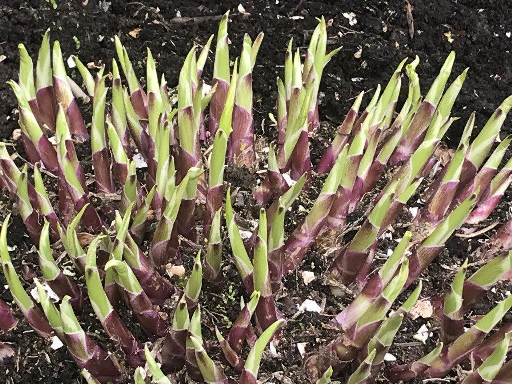 I get a real thrill of excitement when I see the Hosta buds emerging from the soil as they start their upwards trajectory! It is both a thrill and a relief to know that have decided to come back and grace me with their majestic presence. This one is by far the furthest on in terms of emerging growth.