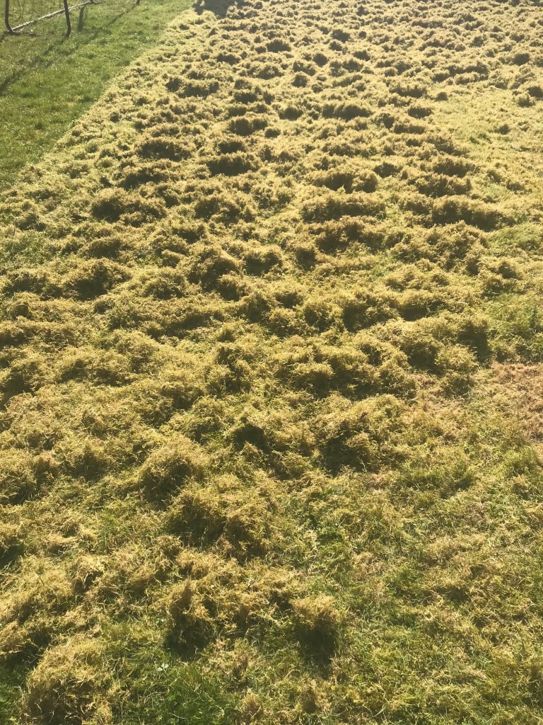 And then, he scarified it again, and again, four times in fact in some places as he was absolutely not letting a patch of moss remain! That also meant that there wasn’t much more than a patch of grass which remained either, leaving me with more jobs to add to the to-do list!