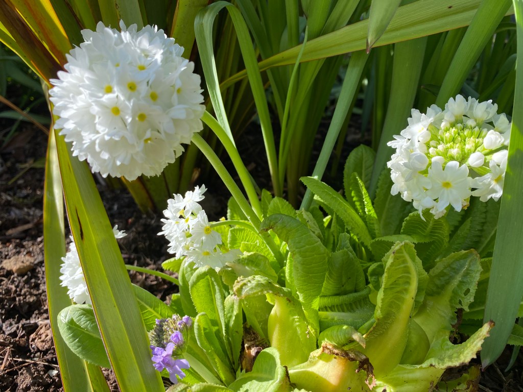 The gorgeous Primula denticulatas are bursting forth all around the garden. I lifted and divided them two years ago and popped them all over the place to give these early bursts of colour and they never disappoint. I’m hoping to lift and divide again this autumn and I think I’ll keep doing that until they fill every vista with their gorgeous springtime drumsticks of colour.