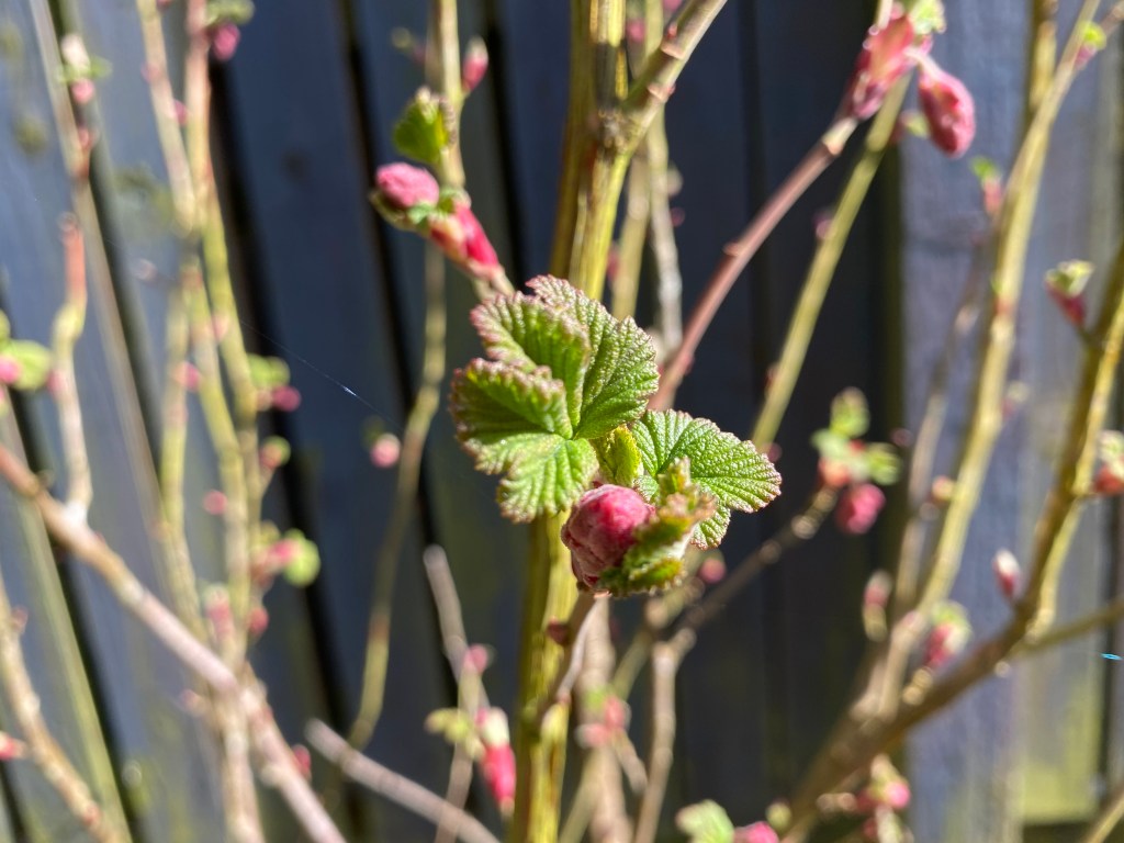 The bare stems of the flowering currant have literally burst into bud over the last few sunny days and they green up a dull corner. I love this one as it was given to me by a friend who no longer had room for it in his new garden design and being a taker of all plant donations, I popped it in a bare corner and have loved it ever since.