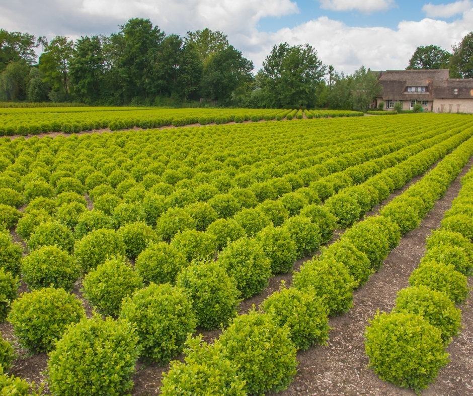 Box blight is a fungal disease caused by the fungus Cylindrocladium buxicola. It thrives in moist conditions and causes both the foliage of box to brown and die and the stems to turn black and then also dieback.